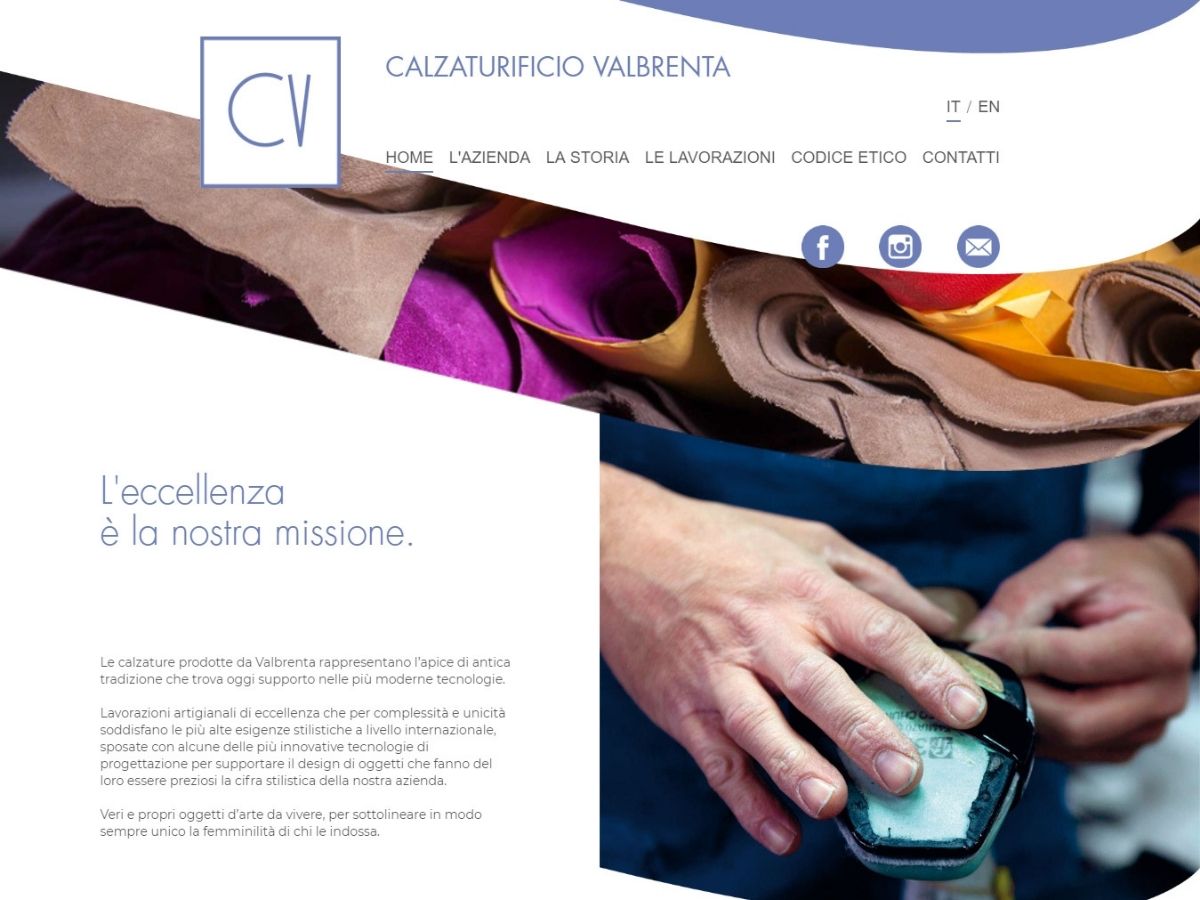 Il Calzaturificio Valbrenta di Vigonovo (VE), da sempre sinonimo di qualità, attenzione al prodotto ed alle materie prime si rifà il look sul web. Il nuovo sito web è stato sviluppato da Intercom Solutions con idea grafica di DNA Italia e punta a raccontare al meglio l'artigianalità ed il made in italy.