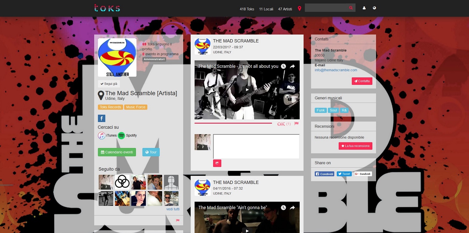 Il sistema è dedicato agli artisti, ai locali e agli amanti dell'arte in tutte le sue forme: poesia, fotografia, pittura e soprattutto tanta musica.