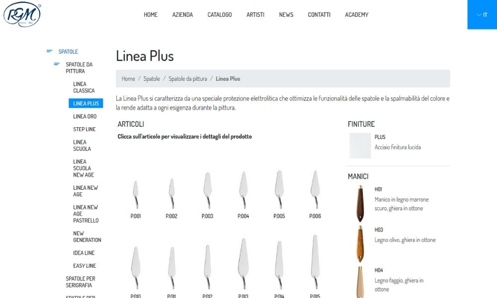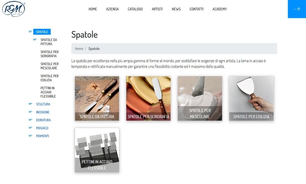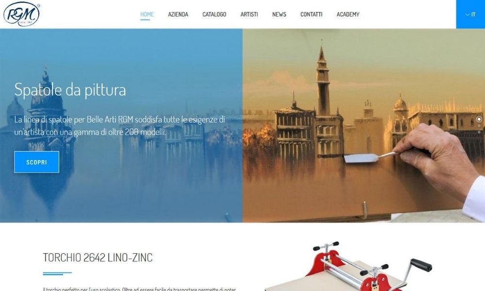 Intercom Solutions si è occupata di sviluppare il sito web multilingua con catalogo prodotti di RGM, punto di riferimento per il settore delle belle arti e dei prodotti di qualità del Made in Italy.