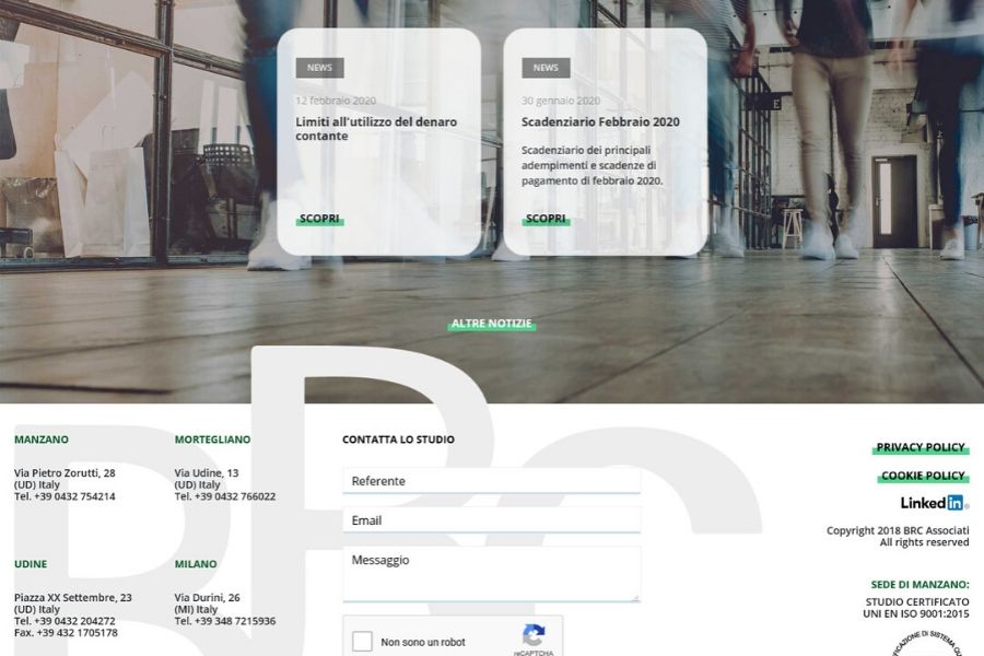 Il nuovo sito web presenta nuovo layout responsive in linea con l’attuale immagine coordinata dello studio ed è stato sviluppato per meglio descrivere i servizi offerti, le diverse specializzazioni e per presentare tutti i professionisti che operano presso Studio BRC Associati.